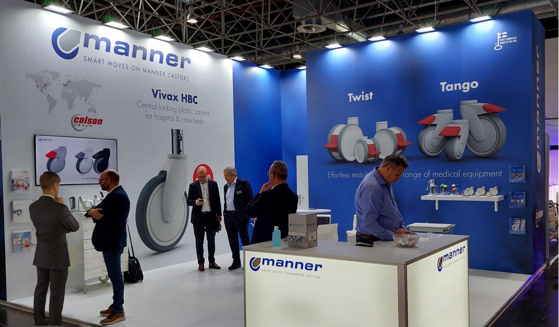 Manner, een bedrijf gevestigd in Hanko Finland, heeft een rijke geschiedenis die teruggaat tot 1890. In de jaren 30 begon Manner met het produceren van wielkasten, aanvankelijk gericht op wagen onderstellen en later op (plaatstalen) zwenk- en bokwielen. In de jaren 50 werd de wielproductie hoofdactiviteit en introduceerde het bedrijf in de jaren 60 naast plaatstaal ook kunststof wielen. De continue focus op ontwerp en ontwikkeling, leidde in 1998 tot het eerste volledige kunststof wiel en het winnen van de Red Dot Design Award in 2010.
